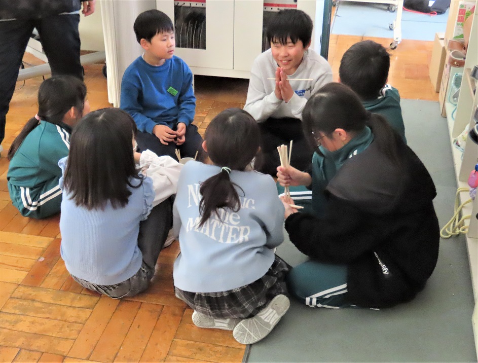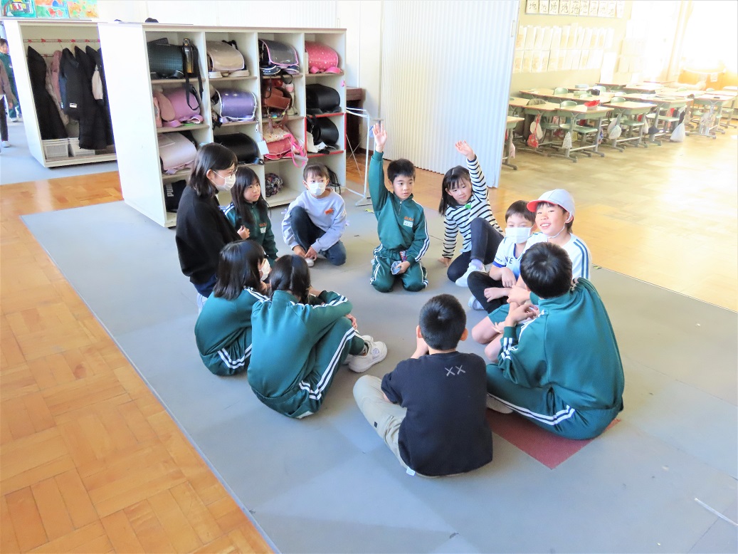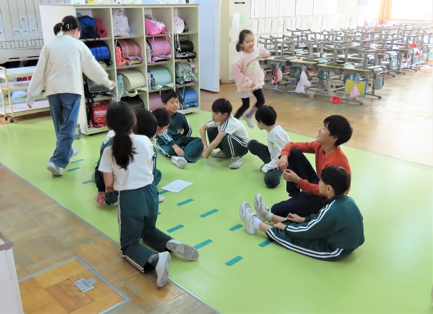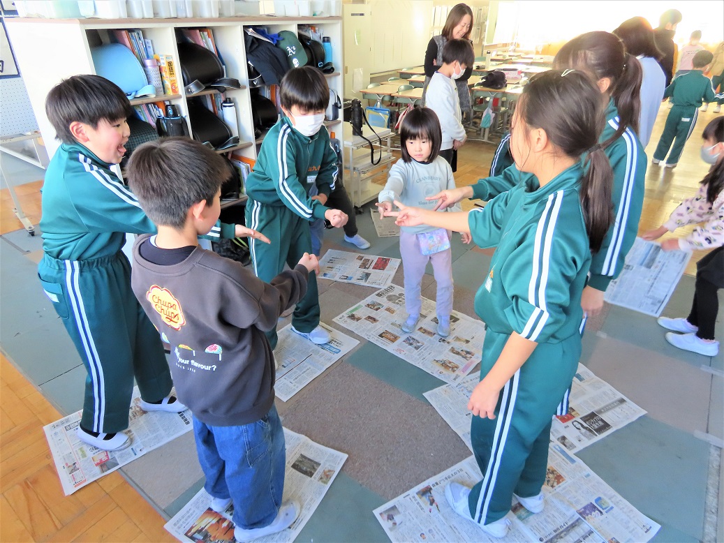 5回目ともなると、すっかりなかよくなっています。今回も、6年生が中心になって、定番の「花いちもんめ」「だるまさんが転んだ」「ハンカチ落とし」や「王様ゲーム」「新聞紙じゃんけん」などの新規のゲームに、楽しそうに取り組んでいました。校内あちらこちらに笑顔があふれ、子ども達の歓声が響いていました。