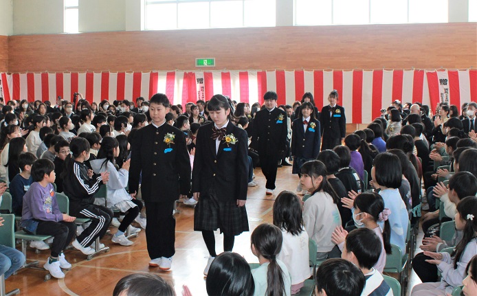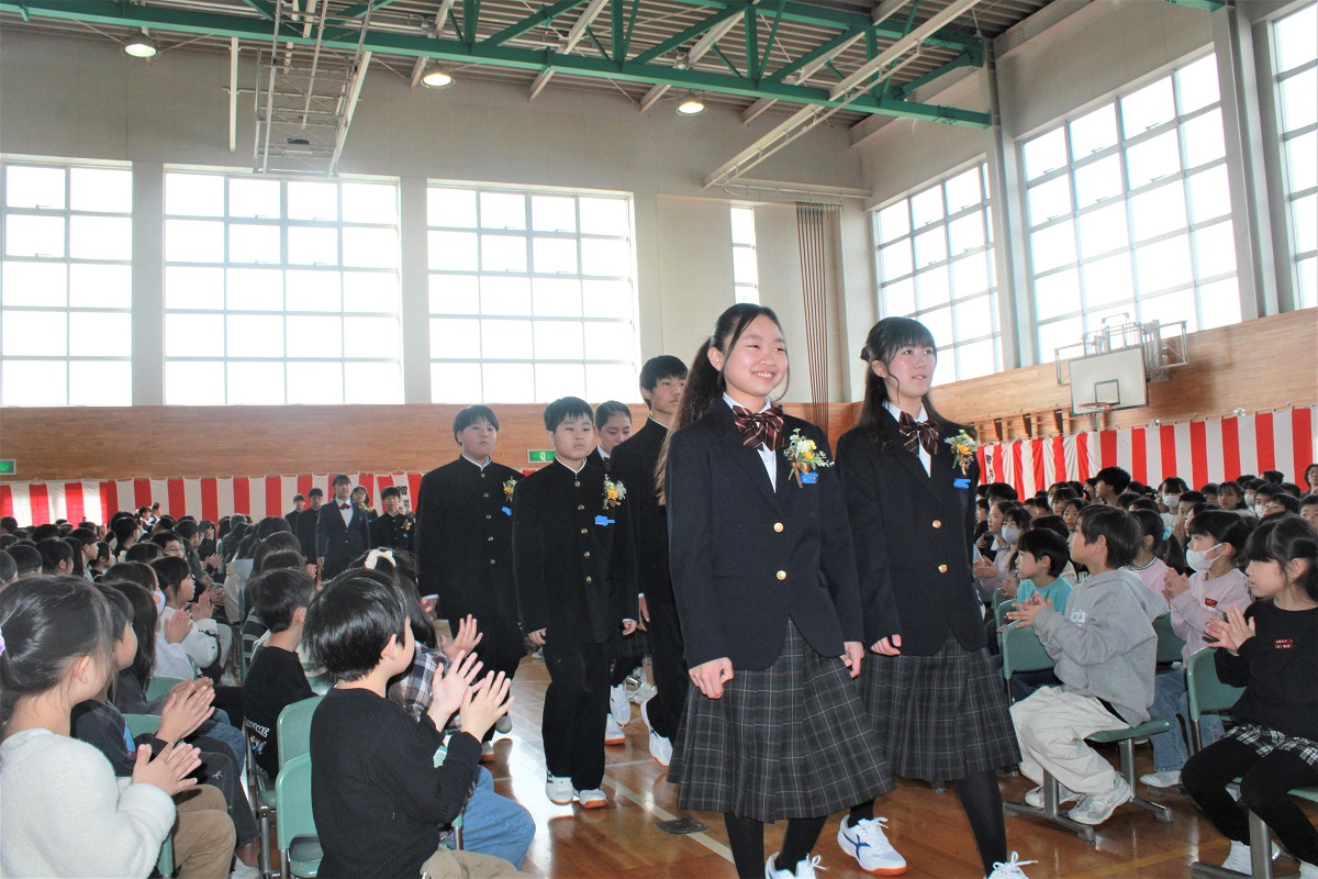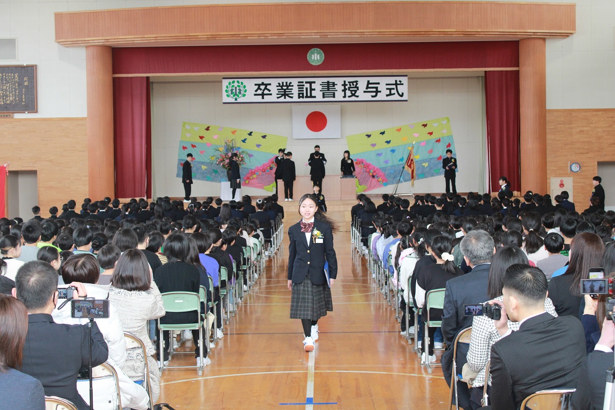 第69回卒業式を行い、89名の6年生が九小を巣立っていきました。