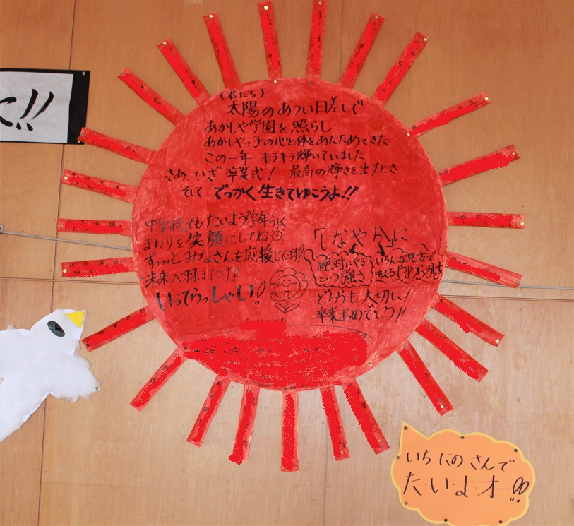 『たいよう学年』のみなさんが、光り輝く未来へ大きく羽ばたき、それぞれの夢を実現していくことを心から願っています。
