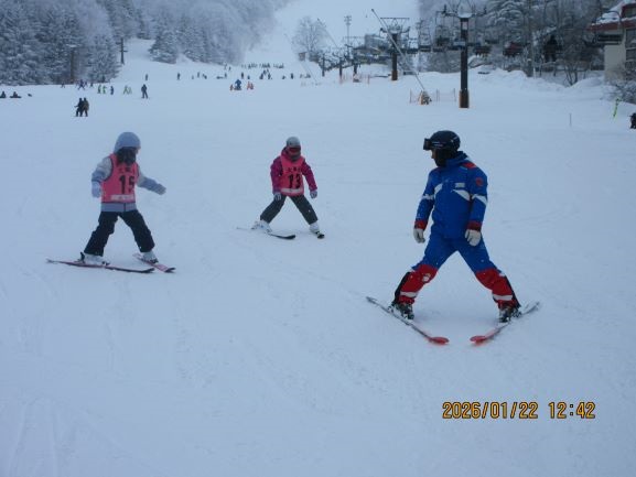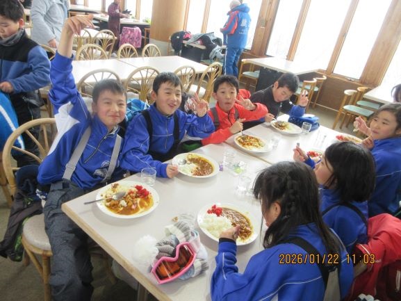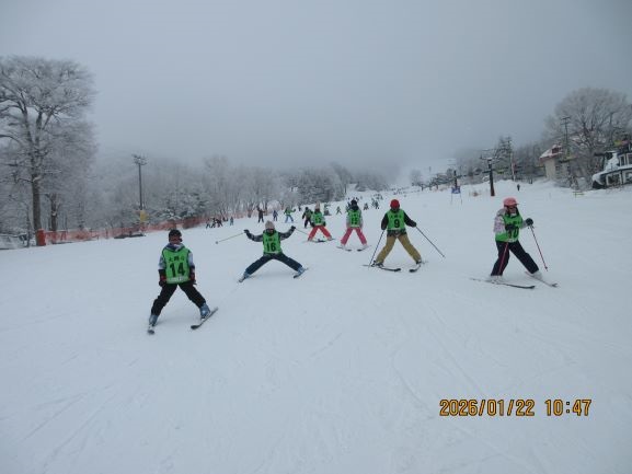 朝は市内を抜けるのが大渋滞で、予想以上に時間がかかりました。ちょうど蔵王についた頃、陽射しが出て晴れ渡り、歓迎しているようでした。開校式後にそれぞれの班でスキーが始まると、みんな夢中で練習していました。昼食時間に戻ってくると「楽しい!」「早く滑りたい!」「うまく滑れるようになった!」とみんな笑顔でしたし、大盛りカレーを一気に食べる姿が頼もしかったです。午後も練習に励み、閉校式で「楽しかった人?」との質問に多くの手が挙がっていました。子供たちの一日での上達は大きく、驚く程でした。来週も楽しく、ぐっと上達できるようにしたいと思います。
