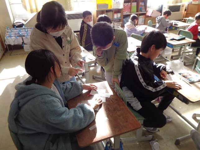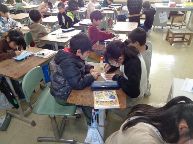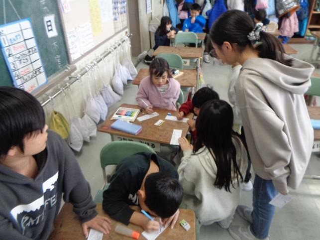 今日の活動内容は、送る会で6年生に贈るメッセージカード(よせ書き)づくりをして、渡し方を練習することでした。6年生との思い出を振り返りながらじっくりと考えて、一文字一文字丁寧に書いている子どもたちの姿が印象的でした。そして、その様子を見守りながら、アドバイスしたり手伝ったりする5年生の様子がとても微笑ましかったです。