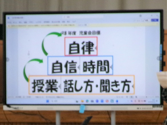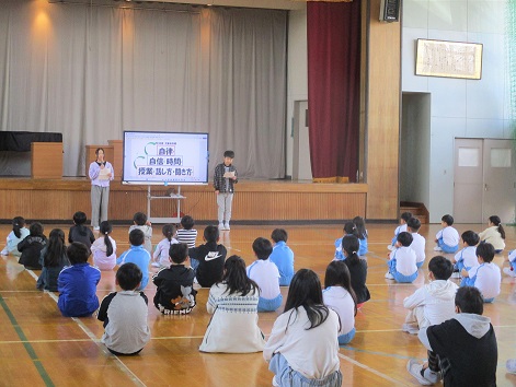 令和8年度の児童会目標は、一段ずつ階段をのぼってレベルアップしていくイメージでつくったそうです。
