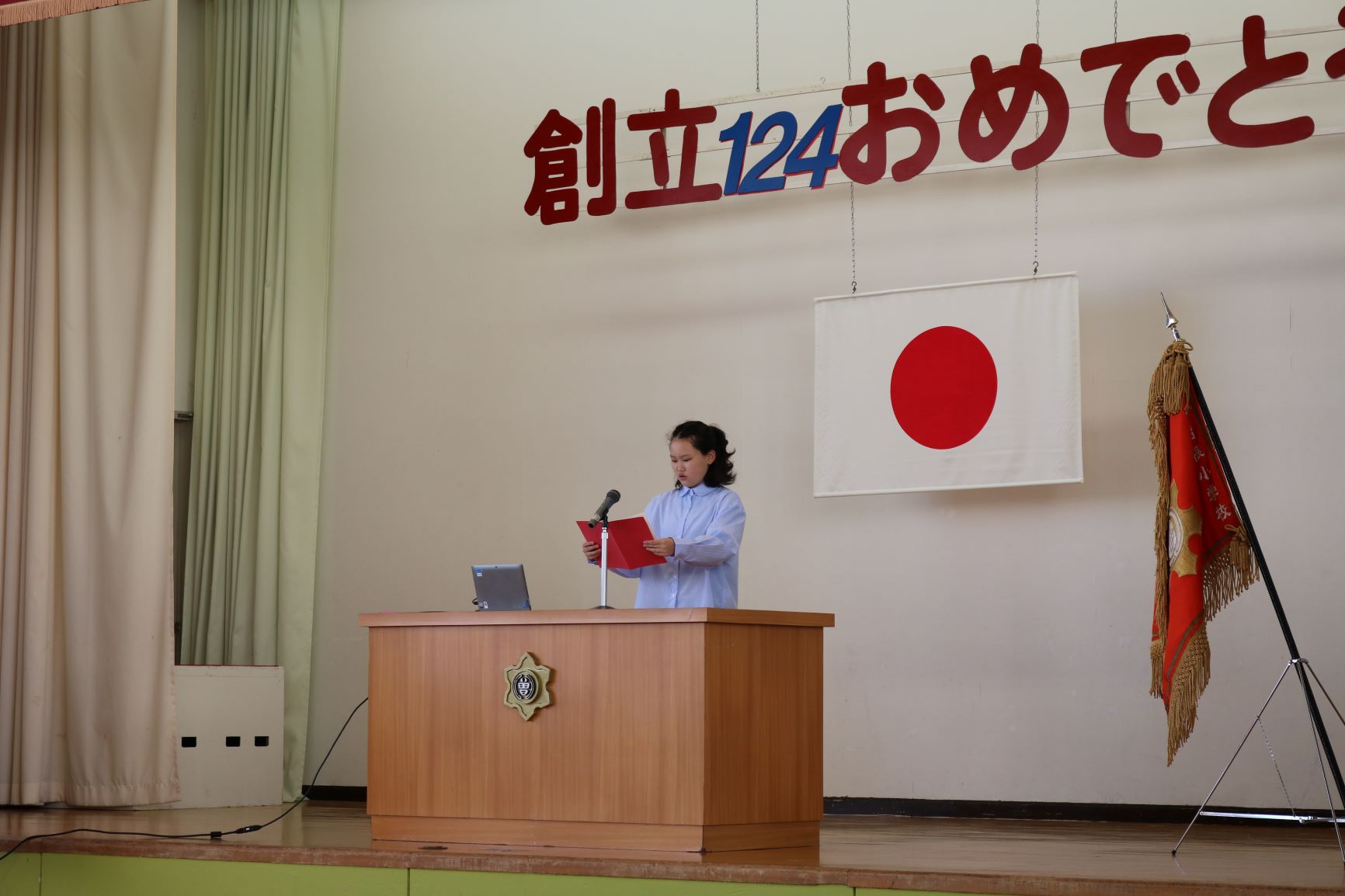 同窓会長さんからは学校にあるモニュメントにまつわる話をしていただき、児童代表のお祝いの言葉では、地域の伝統を受け継ぎ、新しい伝統をつくっていくことを堂々と発表しました。