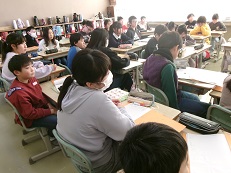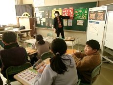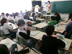 テーマは、「食べることについて考えよう」。5大栄養素や体の成長、内臓の長さなど、様々な教材を用いてわかりやすく具体的に教えていただきました。