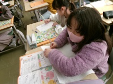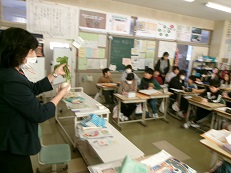 5年生の教室では、栄養教諭の小関先生をお招きし、食育学習を行いました。