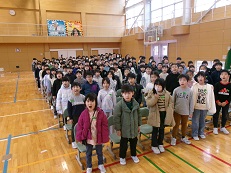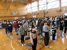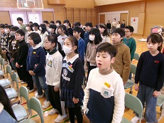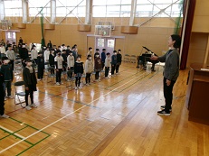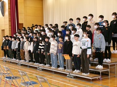 1・2校時に全校による卒業式練習が行われました。1年生にとっては初めての卒業式練習でしたが、最後までとても立派に参加することができました。