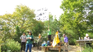 「ぼくたちも“山の会”に入り、もっと登りたい!」という思いを叶えるべく、きらり学級2人が3回目の登山を行いました。今回は、頂上で手作りの旗を振り、みんなに見てもらいたいという願いもありました。