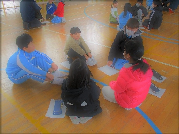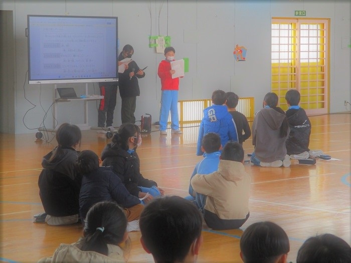1月23日(金)ロング中間休みの時間に、集会委員会主催で2つのゲームを行いました。「なかよし班の仲をさらに深める」ことをめあてにしています。『共通点探し』では、たくさん共通点が見つけられた班もあれば、なかなか見つけられない班もありましたが、お互いの好きなことや興味のあることがわかり、より一層仲が深まったことと思います。最後に集会委員会より得点が発表され、2班が高得点をとりました。