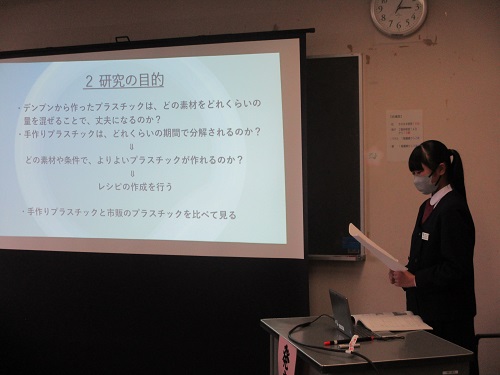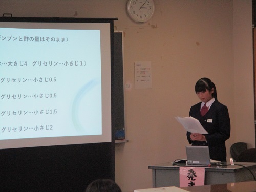 11月19日、山形市総合学習センターにおいて第73回生徒理科研究発表会が開催されました。市内中学校で夏季休業や部活動のなかで理科研究に取り組んだ生徒の代表が一堂に会し発表会を行いました。70年以上続く伝統のある会です。本校からは1,2年生3名が参加しました。