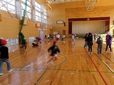 グラウンドや体育館、各教室などそれぞれ割り当てられた場所で、6年生が中心となってみんなで遊びを決め、思い切り遊びます。