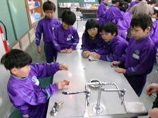 4年生の理科では、理科室でマッチの火をつける練習を行っていました。金属の熱伝導の学習で今はコンロを使う学習がありますが、以前はアルコールランプにマッチで火をつけて熱していました。