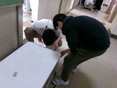 一人一人がしっかりと力を込め、汚れていた給食台がピカピカになっていきます。