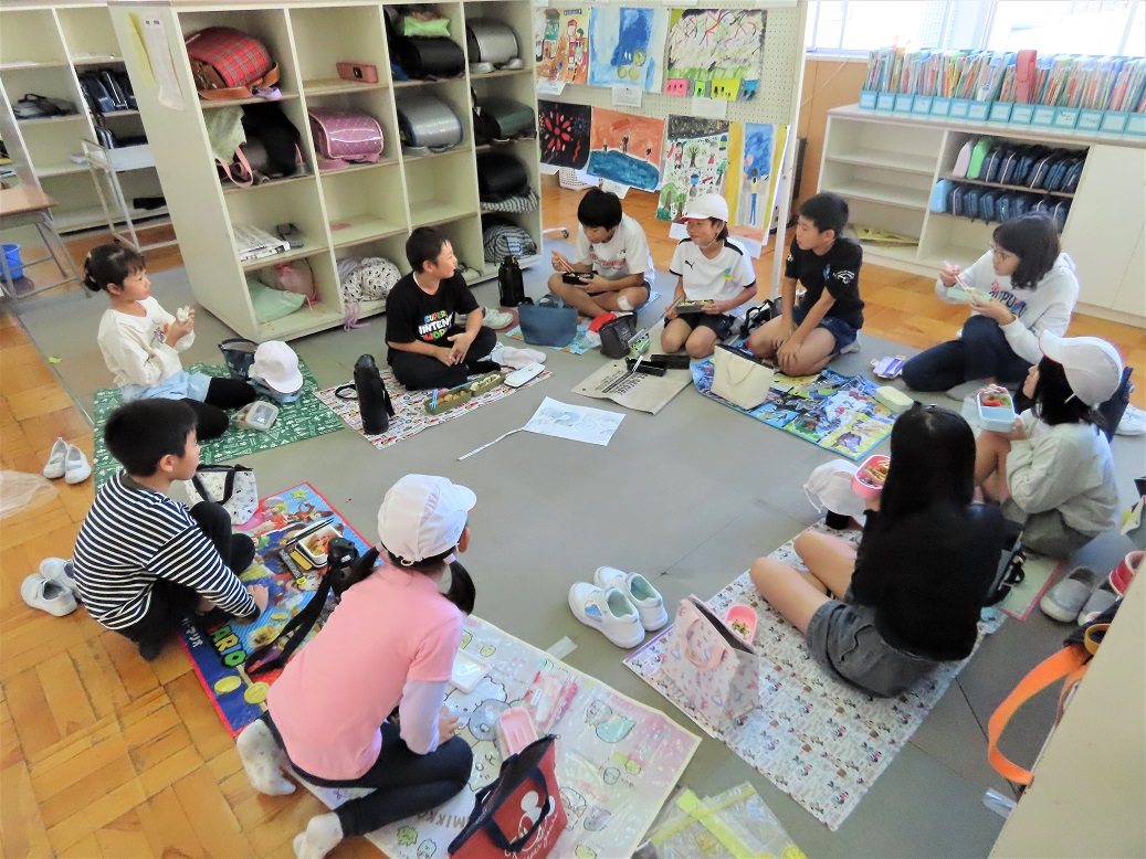 今年度4回目のフレンドタイムは、時間を拡大しての特別企画です。縦割り班ごとにお弁当を一緒に食べて、『九小スタンプラリー』を行いました。