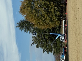 今日、グラウンド北側のヒマラヤスギの大木の選定作業がはじまりました。高所作業車やクレーンを使っての大掛かりな作業です。子供たちが「トトロの杉」と呼んでいた木ですが、とても大きくなり、学校では管理しきれない程です。