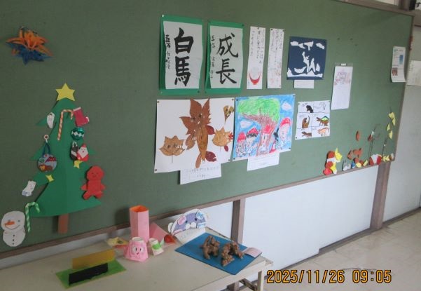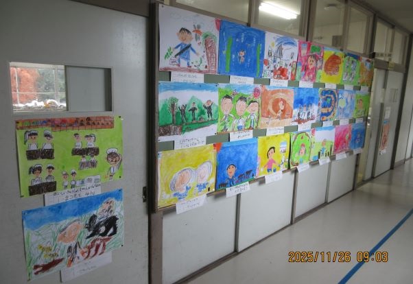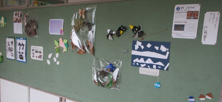 各クラスの廊下の壁には、児童の作品が並んでおり、次々と張り替えられています。