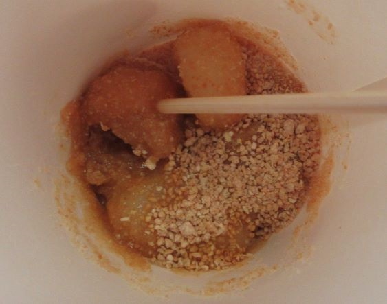 みんなが手で丸めたかわいいサイズのお餅が入っており、きなこがたくさんかかっていました。「おいしい?」「ボクたちつくったんだ」と作り方を教えてくれました。