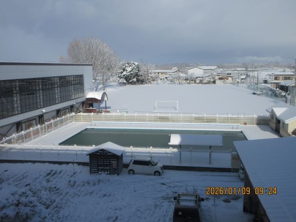 昨日は集団下校でしたが、先生方が帰るころには道路は「ブラックアイスバーン」でつるつるでした。今日の朝も心配していましたが、さらにその上に20cm程の雪が積もり、つるつるしていると言うよりも、雪を踏みしめながらの登校になりました。