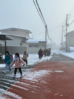 雪で道も狭くなり、子供たちの横を通る時に、かなり慎重になっています。地域の皆様ご協力や見守りもどうぞよろしくお願いいたします。