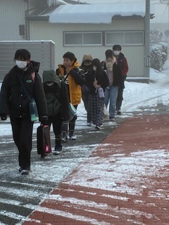 今朝も寒く、̠マイナス5℃以下になったようです。登下校の道が悪く、ボコボコだったり、ツルツルだったりしており、子供たちが苦労していました。「何度も滑った」「転んでいる人がいた」「ようやく着いた」と校門までついた子供たちから聞きました。