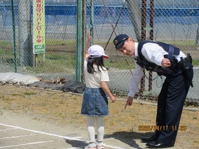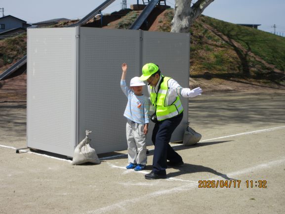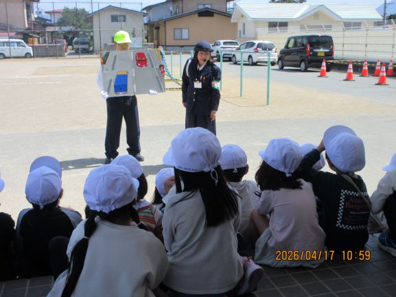 本日、晴天のもと、1学年の交通教室を実施しました。大郷駐在所のお巡りさんや山形市市民課の専門指導員のみなさまからのご協力をいただき、安全な歩き方や横断の仕方について、お話を聞いたり、道路に見立てたグラウンドを実際に歩いたりしました。1年生の子どもたちは、しっかり話を聞き、学んだことを意識しながら安全に歩行していました。