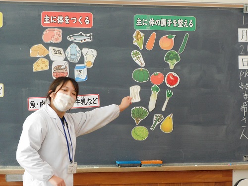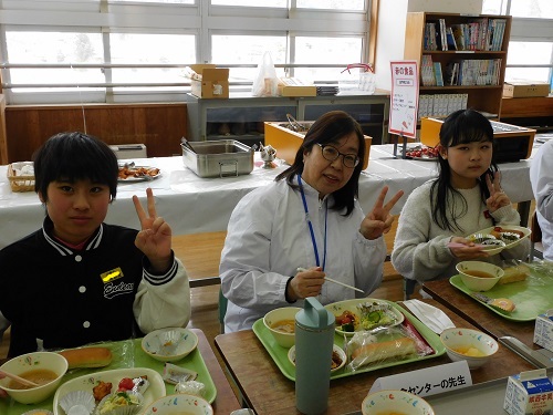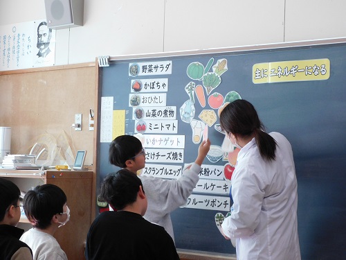 栄養士の先生から「バランスのとれた食事」についてご指導いただいた後、バイキング給食を楽しみました。お腹一杯になり、心も身体も幸せな気持ちになりました。給食センターの皆様、いつも美味しい給食をありがとうございます。