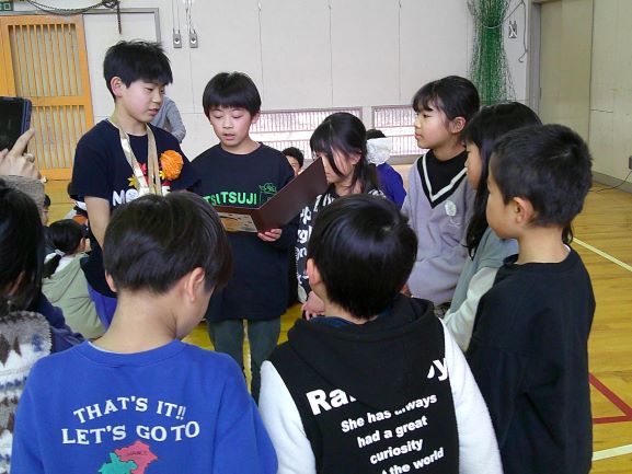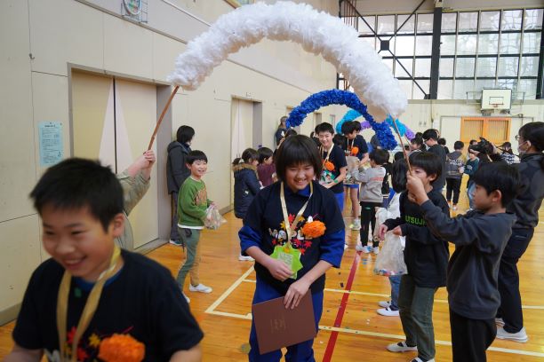 6年生7名は、照れながらもとてもうれしそうでした。在校生もやりきった満足そうな顔でした。大好きな6年生へ全校生からの「ありがとう」の気持ち、きっと伝わったことと思います。「笑顔100%」の楽しくあたたかい会となりました。
