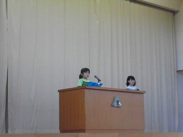 2学期始業式では、2年と4年代表の児童から「2学期がんばりたいこと」の発表がありました。2学期は、80日間で一番長い学期となります。子どもたち一人一人がめあてをもって、そのめあてに向かって頑張れるように支えていきます。
