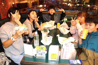 1日目は、函館市役所訪問、函館市内班別自主研修、函館山夜景観賞、ラッキーピエロ(夕食)、そしてホテルへ。