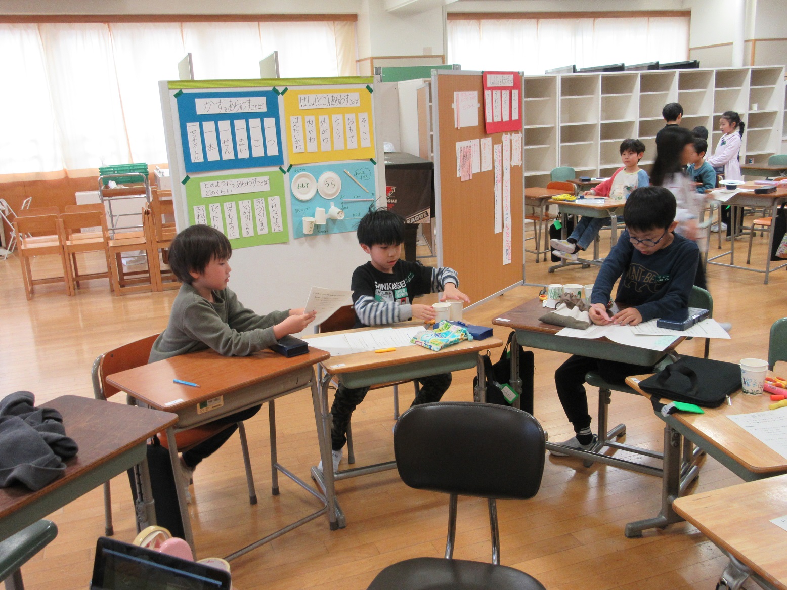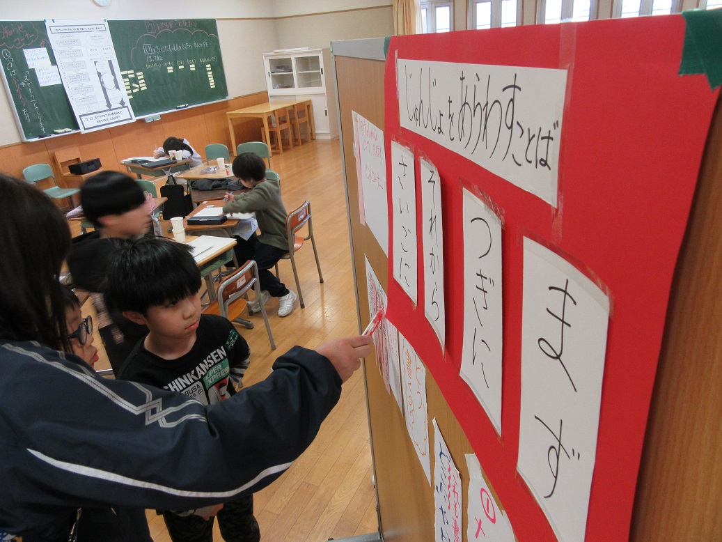 2年生が単元内自由進度学習で研究授業を行いました。国語の説明文を書く学習です。自分で作ったおもちゃの作り方や遊び方を友だちに説明する文章に挑戦です。掲示物やカードをよく見たり、相談したり、自分で考えたり、やり方を自分で決めながら取り組んでいました。