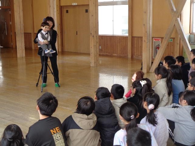 4年生はこれまで、総合的な学習の時間で「福祉」についての学びを深めてきました。今日は腹話術を通して多くの人たちへのボランティア活動を展開している「福和の会」の皆さんにお越しいただきました。実際の腹話術を見せていただきながら、様々な質問にも答えていただきました。子どもたちは興味津々で、腹話術の世界にとっぷりと浸かっているようでした。とても元気で挨拶もしっかりしていて気持ちがいいと、会の皆さんからたくさんお褒めの言葉をいただきました。