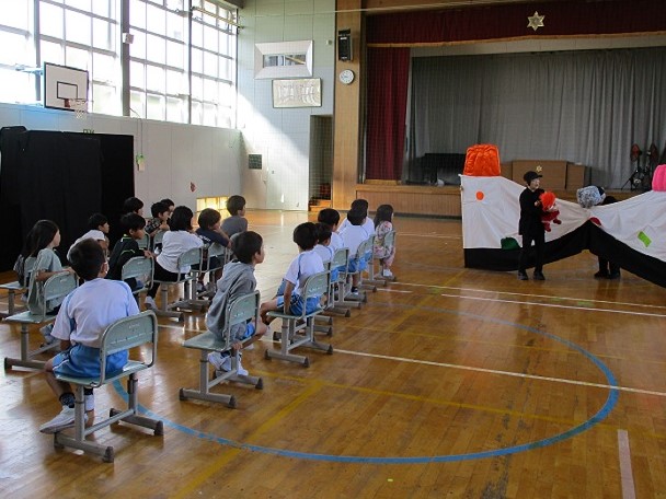 10月10日(金)2時間目、1〜3年生が人形劇「走れ、マーシャ!」を鑑賞しました。演者さん達の迫真の演技に、子どもたちは物語の中に入り込み、最後まで楽しむことができました。