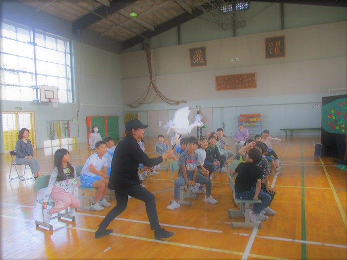 終わってから子どもたちは「白い鳥がとけてなくなったのがおもしろかった。」「白い鳥の目が見えなくなったのがおもしろかった。」と感想を話していました。