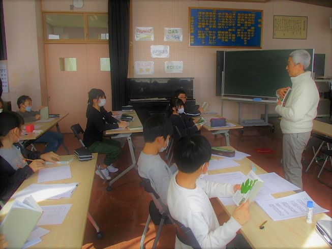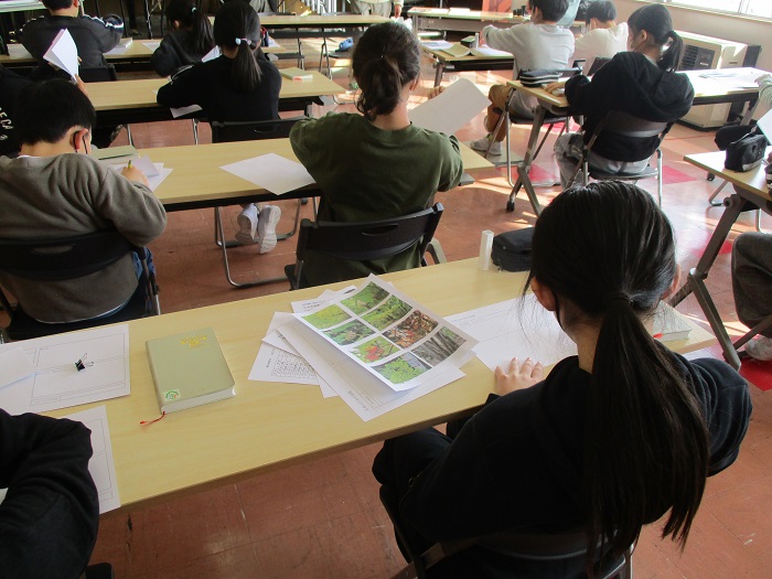 1月22日(木)3時間目、4・5年生が花見山学習を行いました。自然観察指導員の白壁さんより、植物図鑑の作りかたについて教えて頂きました。子どもたちは、自分で撮影した花見山の植物の写真を切り貼りしたり、一口メモを書き添えたりして、オリジナルの植物図鑑を作りました。