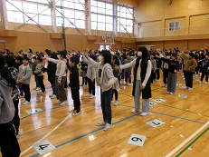 前半は全校合唱の『虹』の練習。手話の振り付けを入れた楽しい合唱です。5年生の実行委員からは、「まだ声が出ていないので、それぞれの教室でしっかり練習してください。」とアドバイスを受けました。