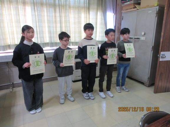 表彰の内容は、理科作品展・理科研究発表会・なかよし作品展です。理科作品展は霞城公民館講堂に作品が並べられ、多くの来場者のみなさんに見ていただきました。理科研究は先日、市内の学校から選ばれた研究の発表会が開催され、大郷小の代表児童も堂々と発表してきました。なかよし作品展は、市内小中学校の仲間の作品の発表会です。表彰されたみなさん、おめでとうございます!