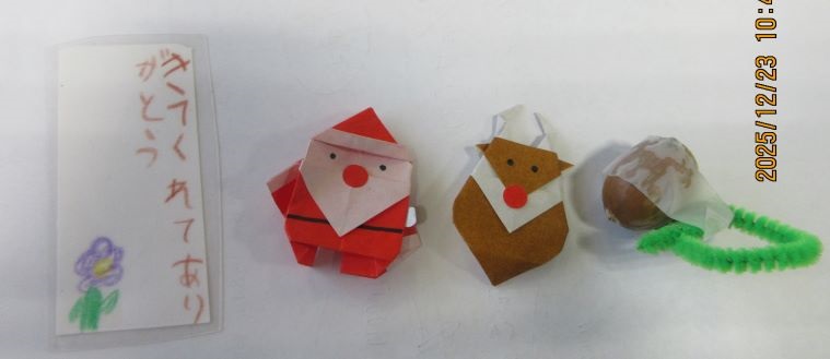 「いらっしゃいませー」の声が響き、店に行くとルールを説明してくれました。そして、うまくいってもいかなくても、手作りの素敵な景品をもらうことができました。