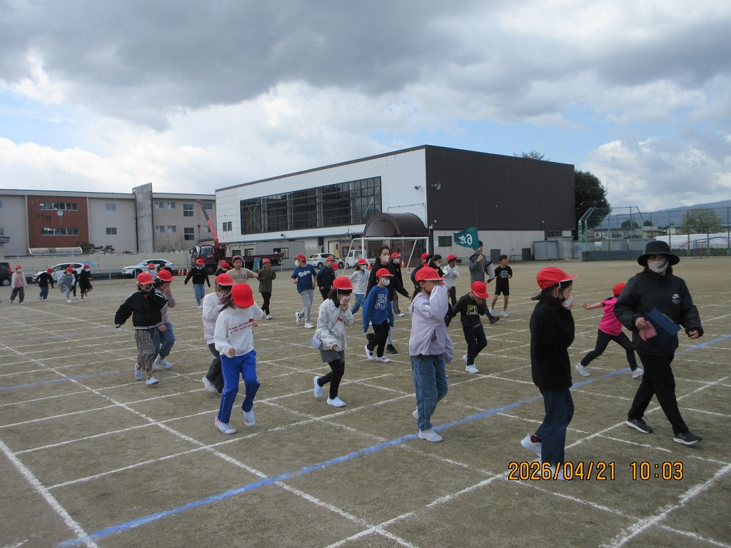 本日、晴天のもと、1学年の交通教室を実施しました。大郷駐在所のお巡りさんや山形市市民課の専門指導員のみなさまからのご協力をいただき、安全な歩き方や横断の仕方について、お話を聞いたり、道路に見立てたグラウンドを実際に歩いたりしました。1年生の子どもたちは、しっかり話を聞き、学んだことを意識しながら安全に歩行していました。