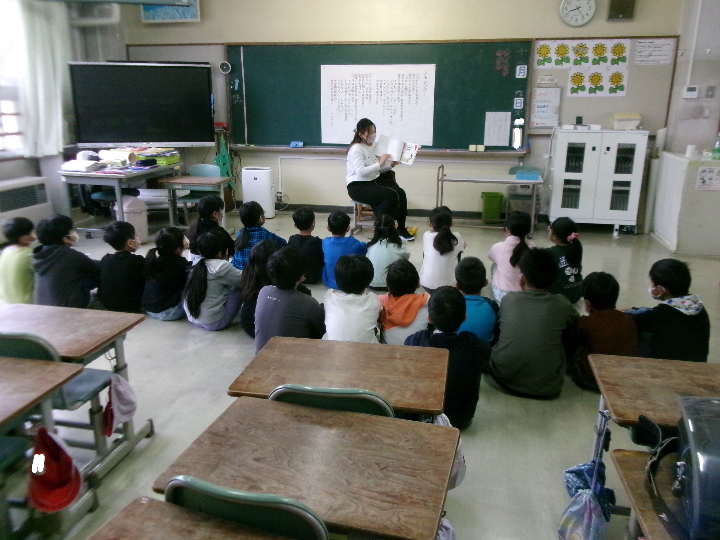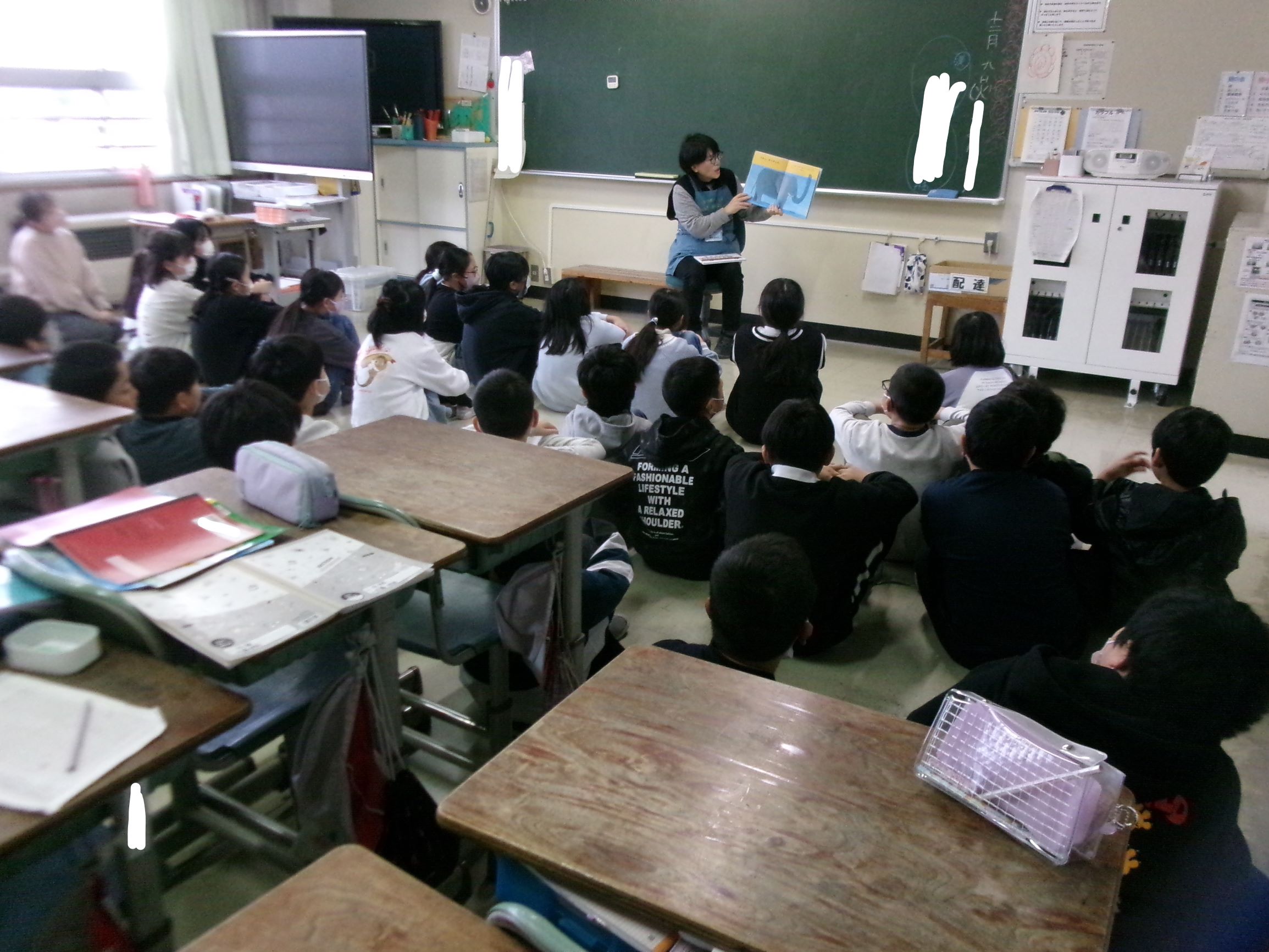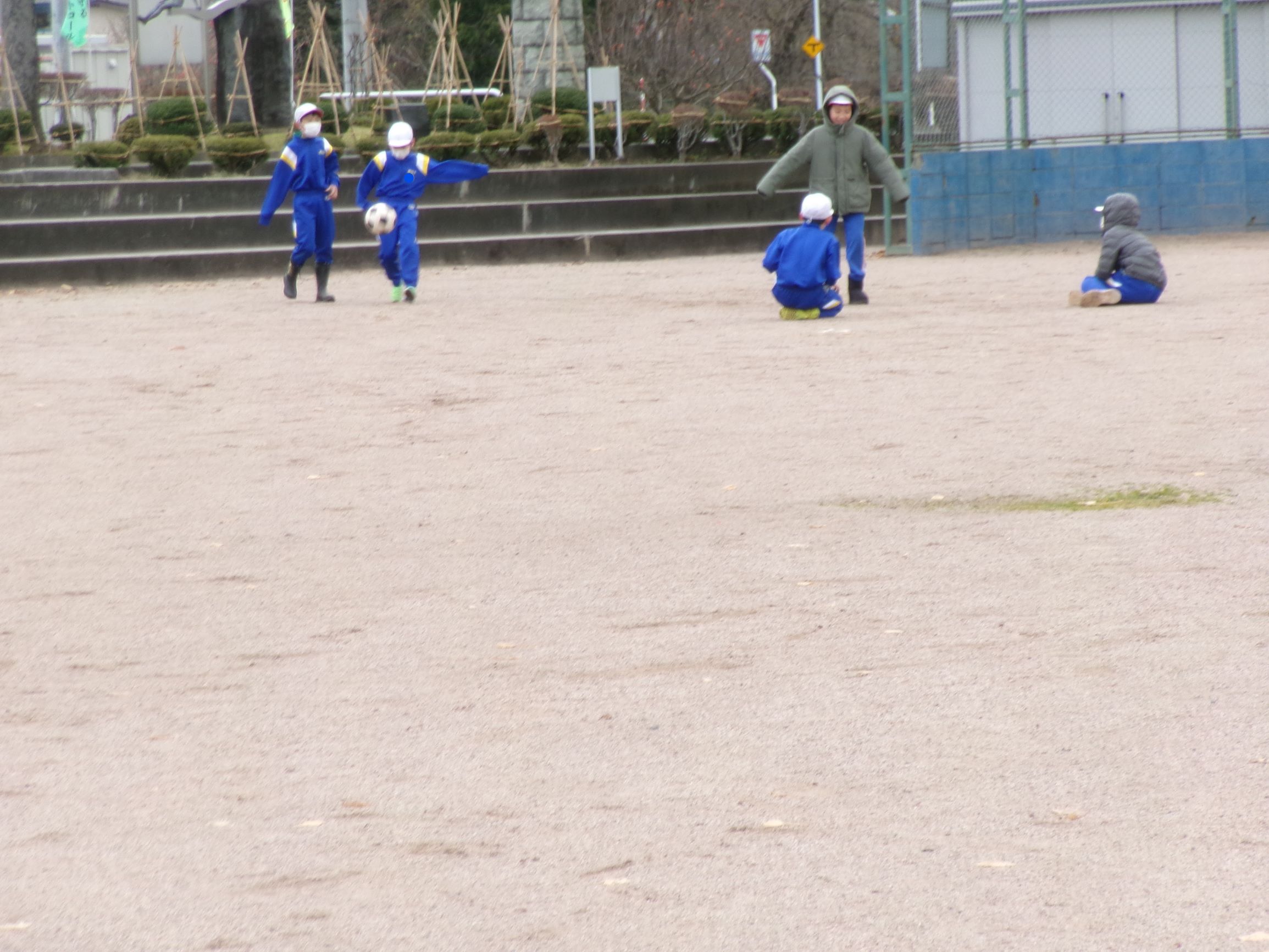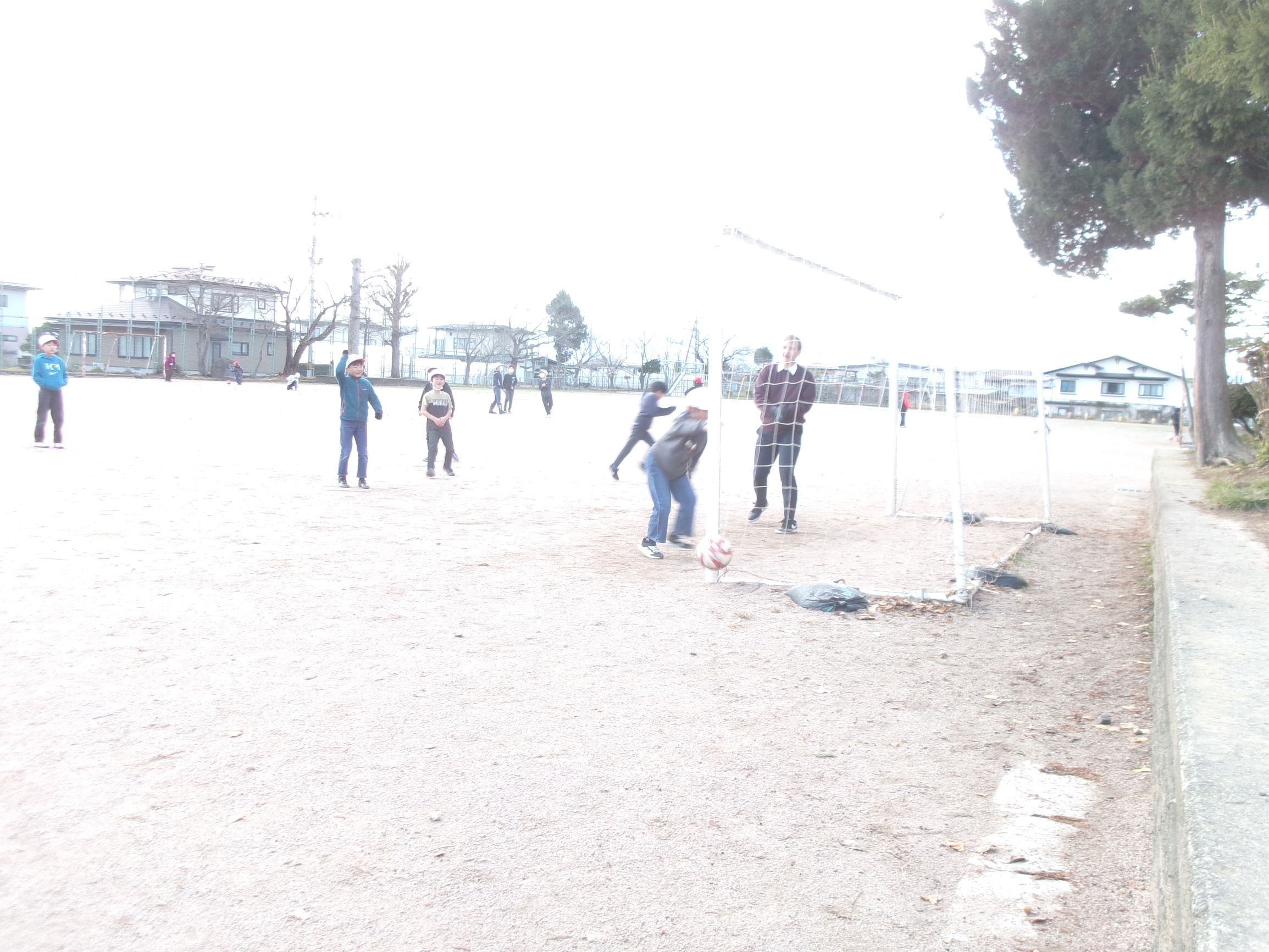 ALTの先生と一緒に外でサッカーをしました。一緒に遊ぶことができて子どもたちは大喜び。寒さの中でも走り回った子どもたちでした。
