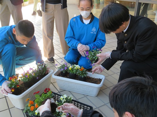 11月4日(火)、山形人権擁護委員協議会様より中学生を対象に、人権についての講話と花の苗を贈呈していただきました。講話を通して、一人ひとりの個性や多様性を理解し、互いに協力し合うこと、地域の方々をはじめ周囲への感謝の大切さを学びました。また、技能技師の齋藤充裕先生のご指導をいただきながら、プランターへの苗の植え付けを行いました。