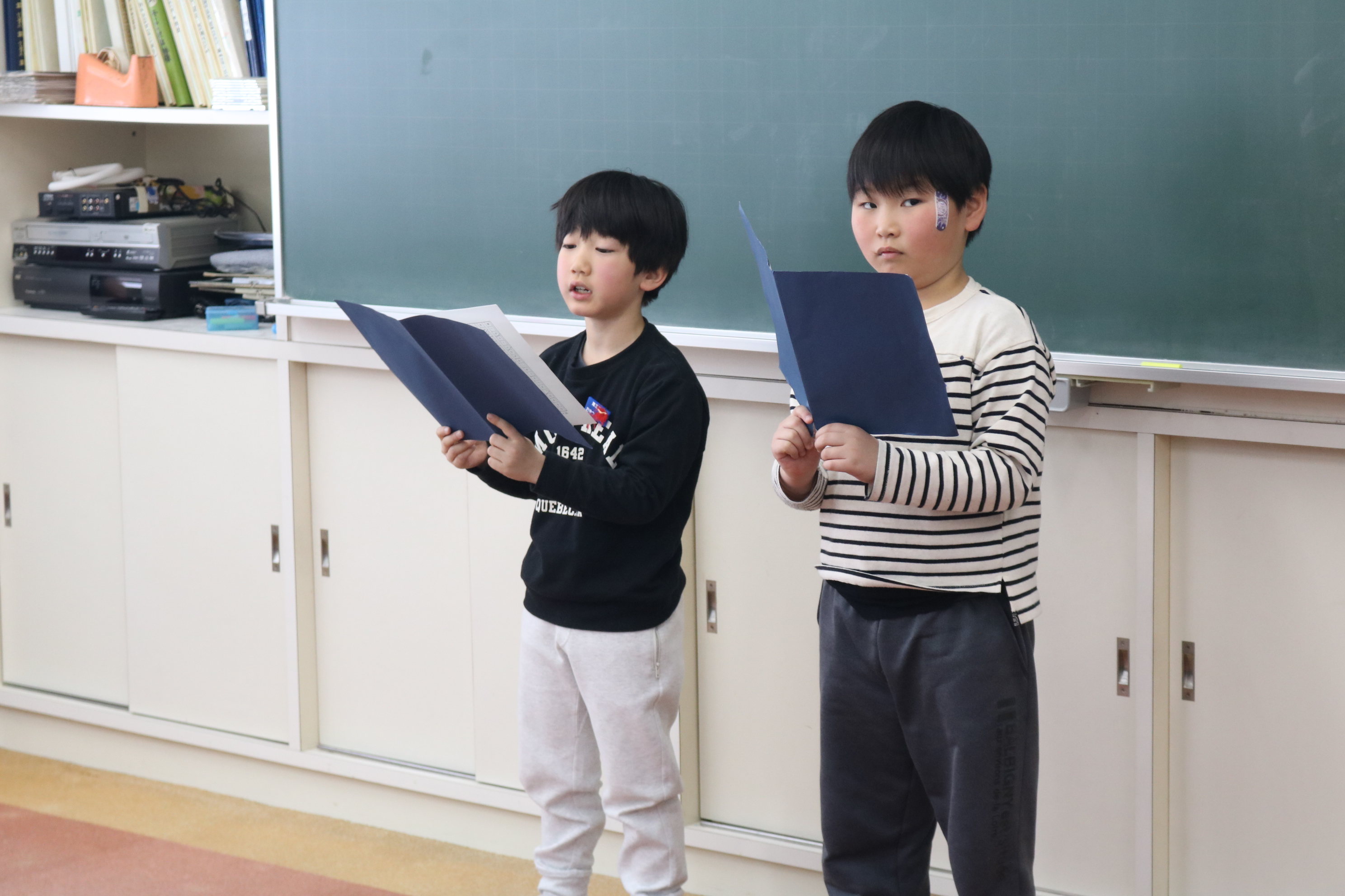 修了式では、小学一年生が今年一年で頑張ったことを発表してくれました。初めてのことがたくさんありましたが、みんなで力を合わせて勉強、生活面でぐんと伸びることができました。頑張りました。