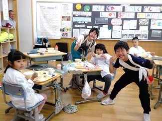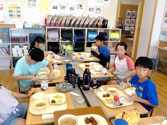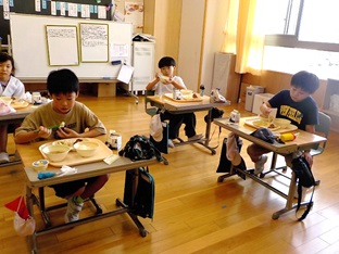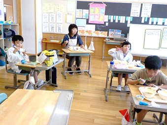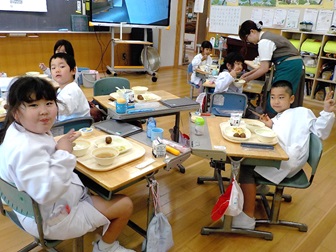 この日の給食は、いつもと違います。何と、担任の先生ではない人と一緒に食べるのです。担外の教員も含めて週替わりで各学年をローテーションすることにしたのです。