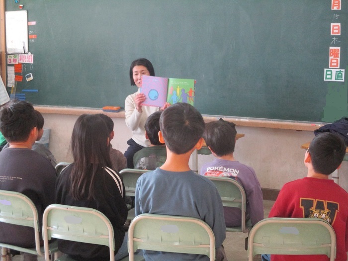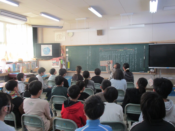 1月15日(木)朝読書の時間に、第9回目の読み聞かせ活動がありました。今回4・5・6年生は、合同で4・5年教室でお話を聞きました。どの教室も、子どもたちは静かにお話に耳を傾けていました。