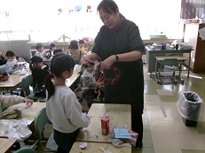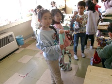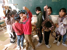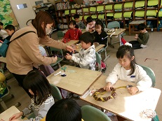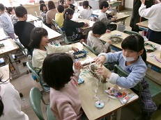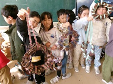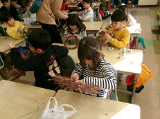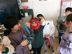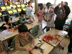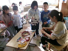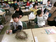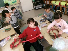 1年生の生活科では、春から育てたアサガオのつるを使って、クリスマスリースを作っていました。