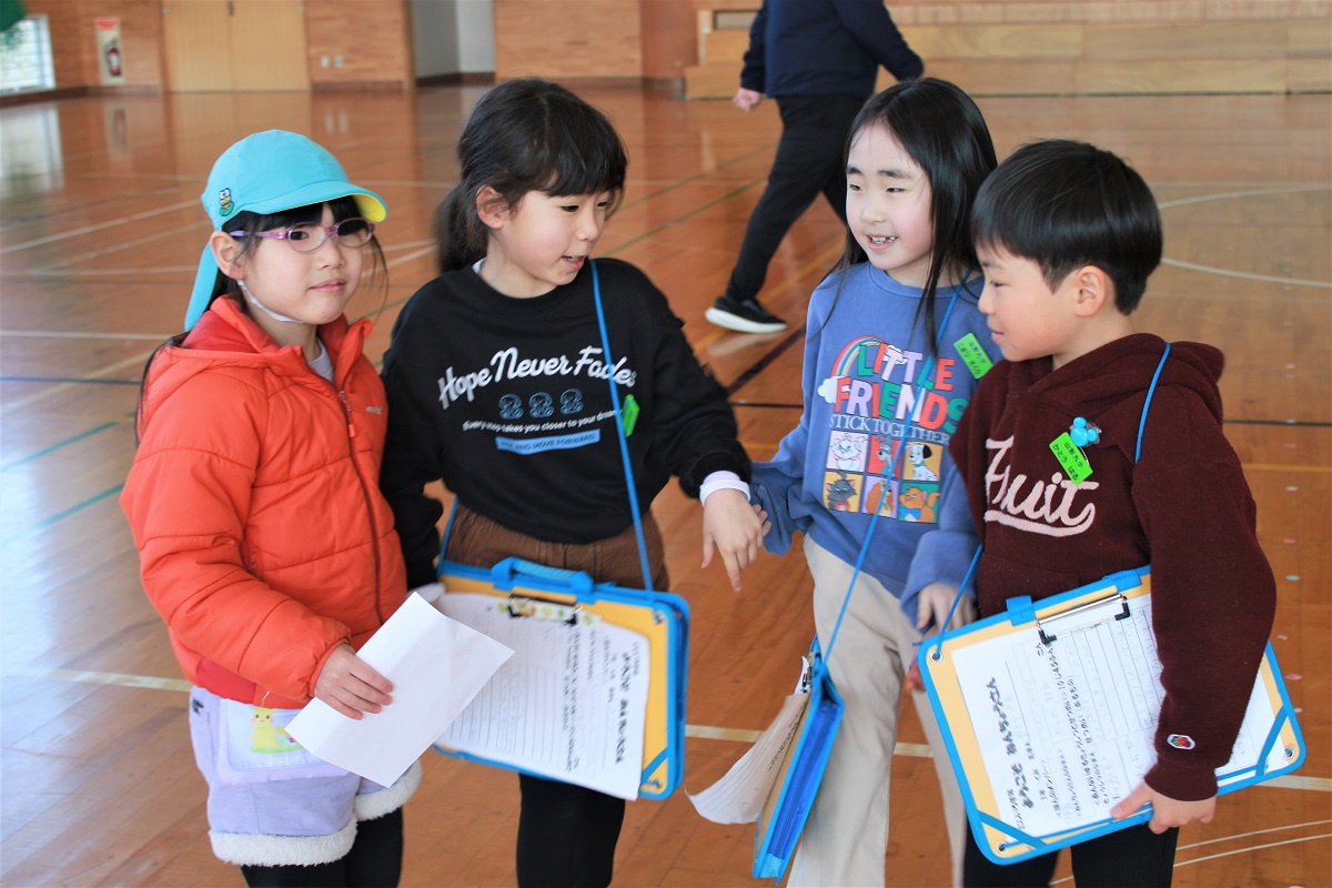 いつもは、どうしても、遊んでもらったりかわいがってもらったりする側になりがちな1年生ですが、今日は違います。自分たちでしっかり計画し、ゲームを進めたり、校内を案内したりなど、1つお兄さん・お姉さんの役割に、はりきって取り組んでいました。1年間の小学校生活で、ぐんと力をつけてきたことが感じられました。