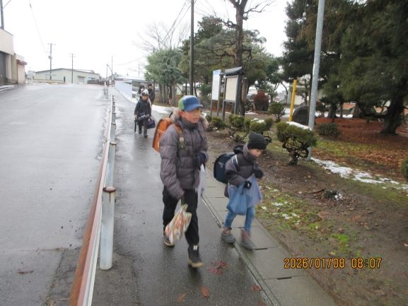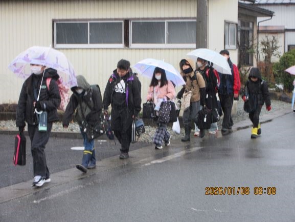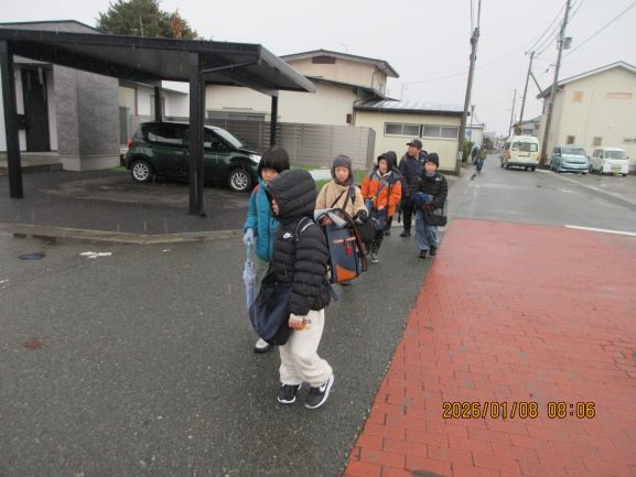 いよいよ新学期のスタートです。風があり、雨や雪が降りつける朝になりましたが、「おはようございます」「おめでとうございます」とあいさつの声をかけてもらえる、とてもうれしい朝になりました。中には「今年もよろしくお願いします」と丁寧にあいさつしてくれる児童もいました。「こちらこそ、今年もよろしくお願いします」とあいさつを返しました。表情が自然とニコッとなり、心がポッと温かくなるように感じました。