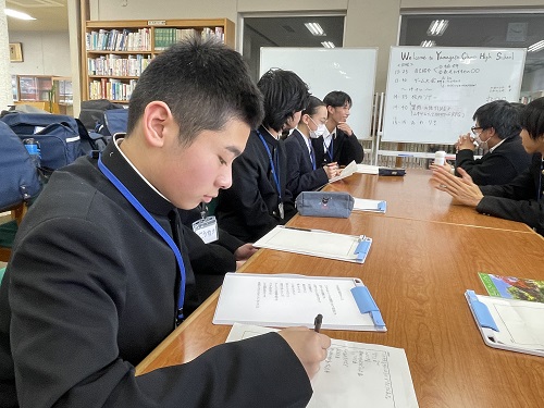 総合的な学習の時間で取り組んでいる山寺探究学習について、県立山形中央高校のみなさんから貴重なアドバイスをいただきました。高校生の探究活動を紹介していただくことで、今後の自分たちの探究活動の方向性について考えました。中央高校のみなさん、楽しく学ばせていただきました。ありがとうございました!