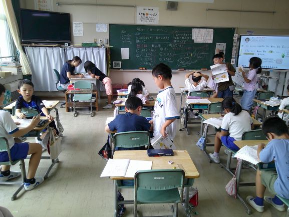 9月12日(金)3年算数「大きい数のしくみ」では、自分で学ぶ・友達と学ぶ・先生と学ぶなど、必要に応じて相手を選んで学んでいました。
