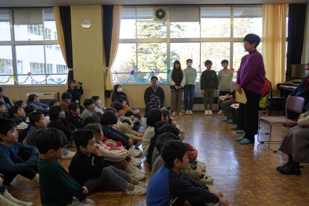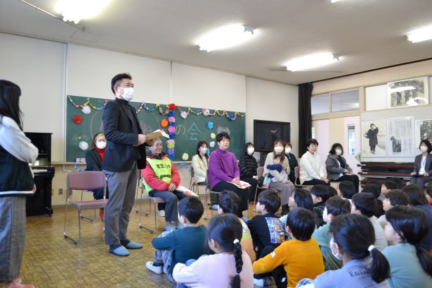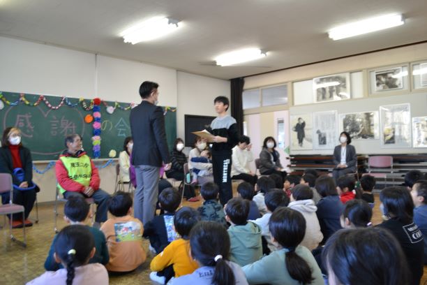 2月18日(水)たんぽぽ読み聞かせの会の皆様、下校見守りの廣谷さん、登校見守りのやすらぎの里さんより小笠原さんにおいでいただき、感謝の会を行いました。子ども達からは、感謝の言葉と歌、メッセージ集をお贈りしました。各代表の方々からいただいたご挨拶には、蔵王二小の児童への思いがあふれており、子ども達が大事にされていることを実感しました。ありがとうございました。