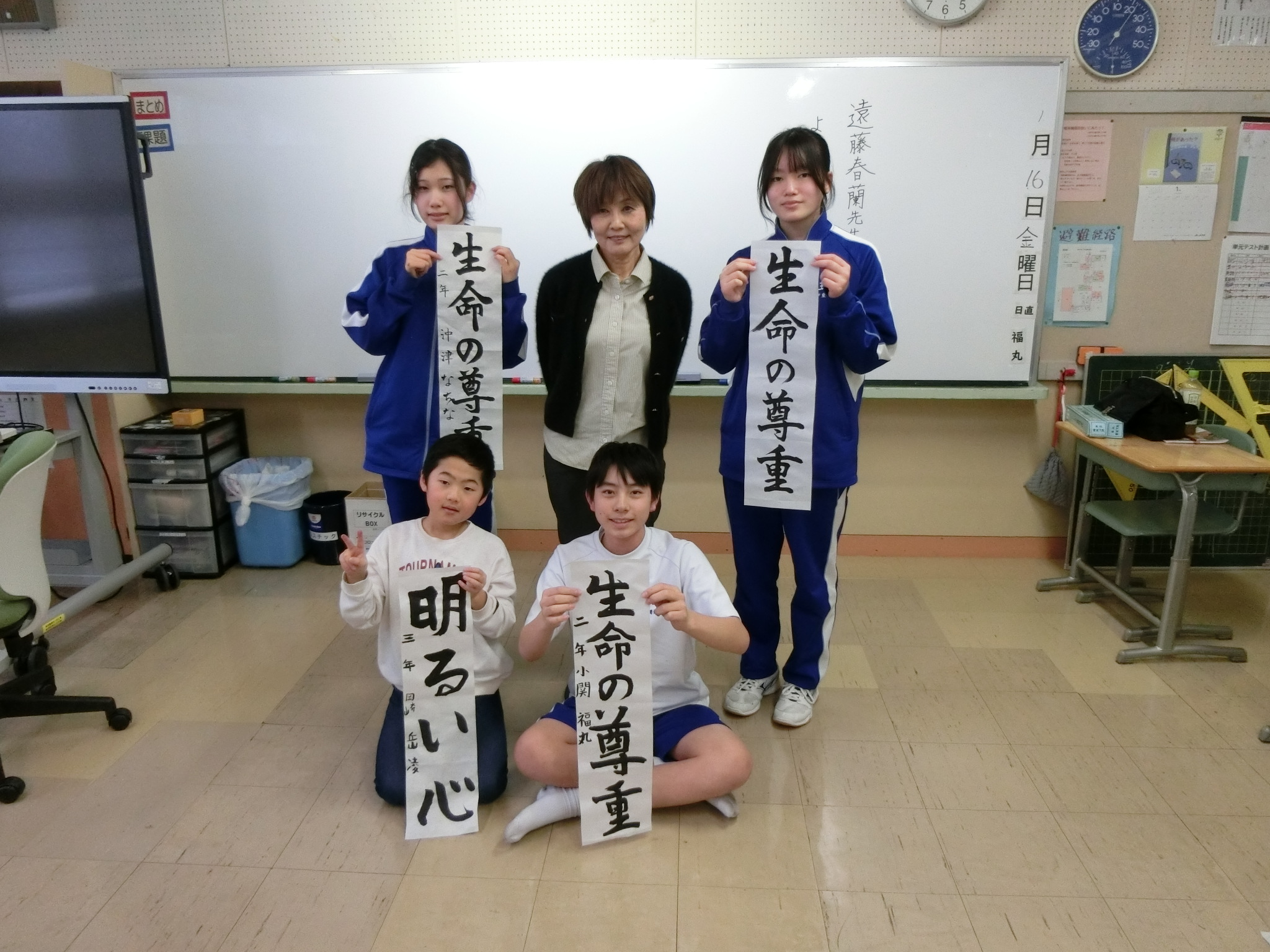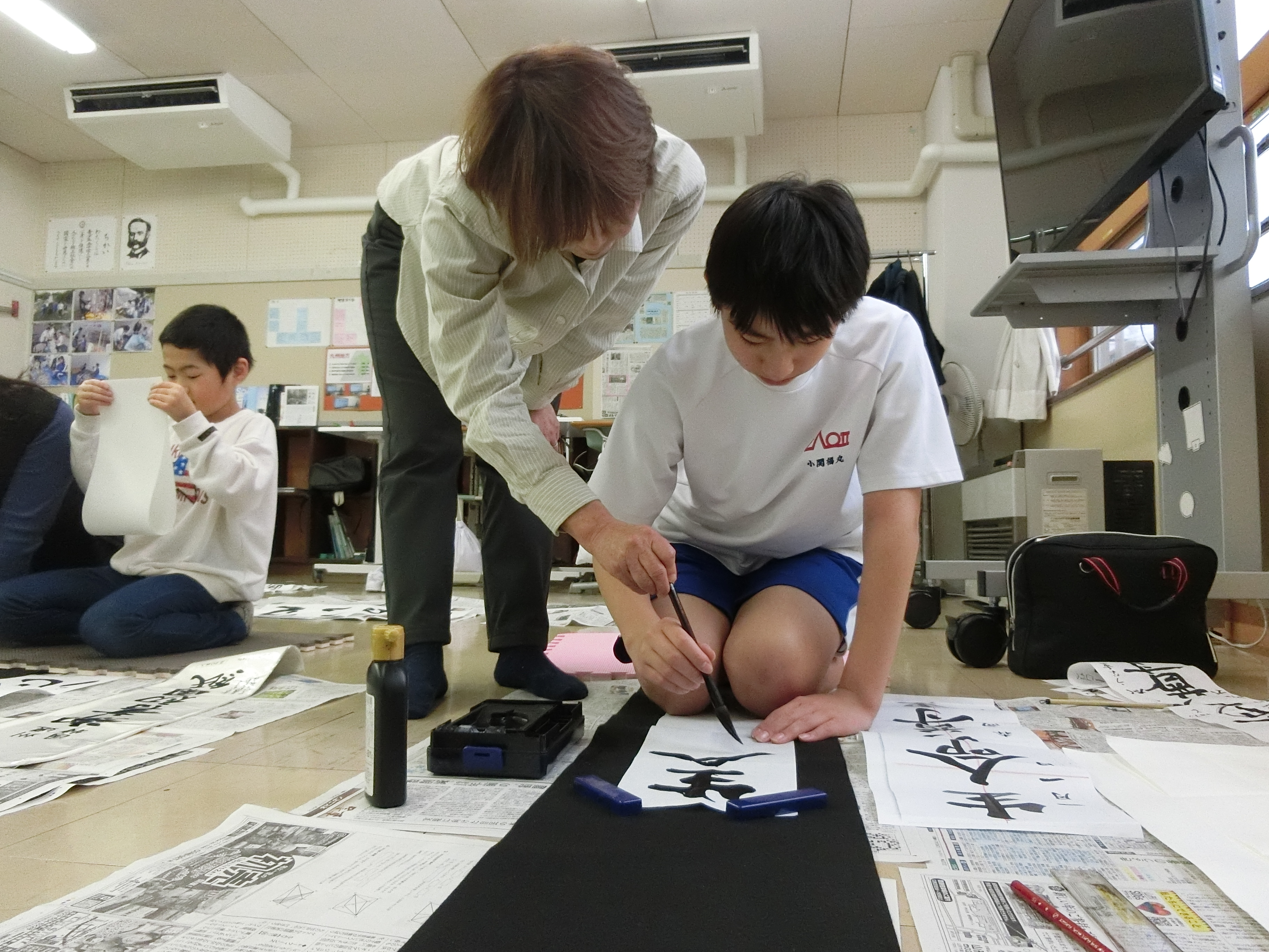 書道家の遠藤春蘭先生をお招きして、小中合同の書道教室を実施しました。筆の持ち方や筆遣いなど、先生から丁寧に教えていただいたことで、自分でも成長を実感できるほどあっという間に上達することができました。ご指導ありがとうございました。