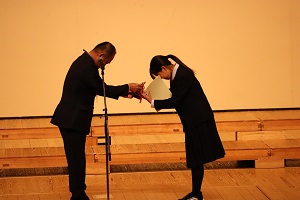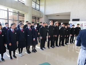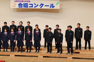 11月6日(木)本校の合唱コンクールを開催しました。会場は市民会館です。熊の出没やインフルエンザ等の流行もあり、なかなか思うように練習できなかったのですが、そこは九中生、一人ひとりが真剣にクラス合唱に取り組み、すばらしいハーモニーを響かせていました。学校最優秀は3年3組の「あなたへ〜旅立ちに寄せるメッセージ〜でした。閉会式では2007年から続く「第九」全校合唱で式をしめくくりました。「合唱の九中」の合い言葉ができてから、20年が過ぎようとしています。これからも、歌うことのすばらしさを受け継いでいきましょう。今年度は50周年記念と銘打ち、コンクール後、プロの音楽家の方によるスクールコンサートを行いました。